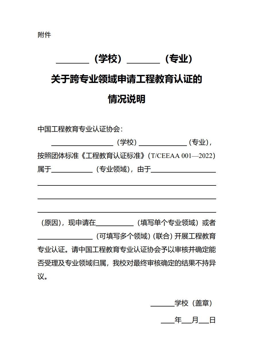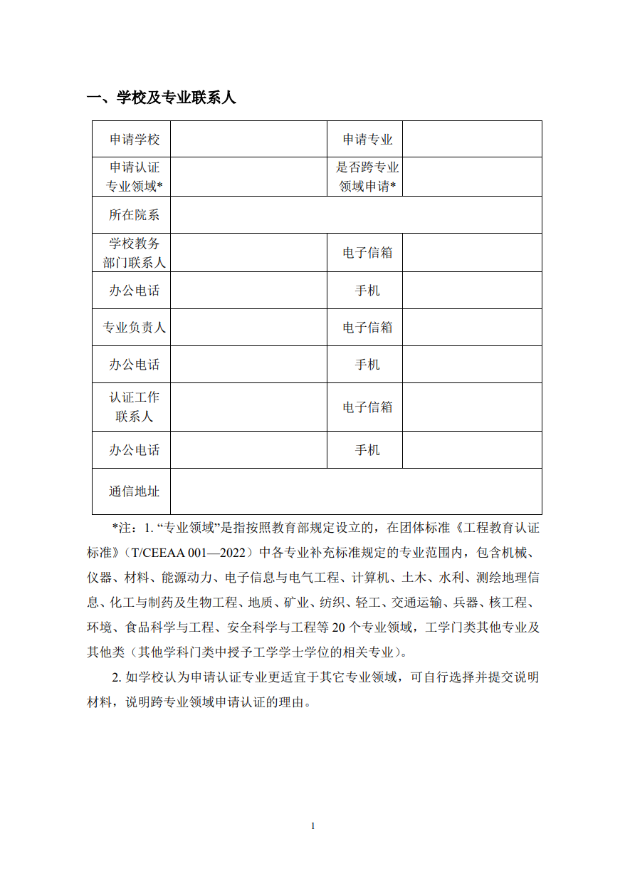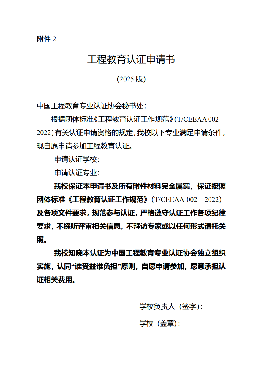 工程教育认证申请书(2025版)