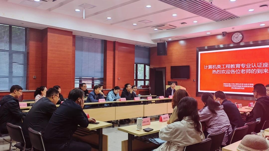 10月22日上午,与会的专家学者们走进西安交通大学,开展“计算机类工程教育专业认证实践与经验、挑战与对策分享”主题座谈会。西安交通大学计算机科学与技术学院教学副院长唐亚哲教授出席本次座谈会,唐教授从对专业认证的理解、如何做专业认证、专业认证的思考等方面进行了分享,对专业认证筹备过程中重难点事项进行了深度解读。在座谈会现场,参会者热烈讨论,就专业认证过程中的疑虑和困惑进行了深入交流。唐亚哲教授耐心解答疑问,并鼓励各高校要坚定信心、齐心协力,共同推动我国计算机类工程教育专业的健康发展。